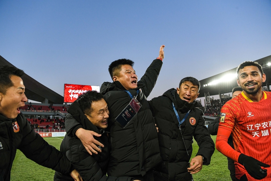 凭借邦本宜裕的进球,辽宁铁人在10月26日举行的中甲第28轮中主场1比0战胜南通支云,以19胜7平2负积64分的战绩,提前两轮荣获2025赛季中甲联赛冠军。沈阳铁西体育场赛后一片欢腾——在辽宁宏运(原辽宁队,该俱乐部在2020赛季开始前解散)2017赛季从中超降级后,时隔八年,这里终于再次拥有男足顶级联赛球队——沈阳人等得太久,好在幸福终于回归。