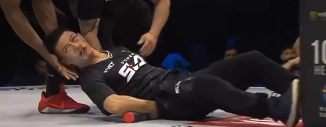比赛视频显示,当地时间10月31日,中国选手赵鸿刚参加世界扇耳光大赛时,对阵外国选手阿曼塔耶夫,在第三回合被对手KO痛苦倒地,脸色惨白。比赛中,他眉角受伤需缝针,眼睛淤青。