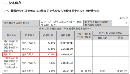 即上述交易完成后,黄世霖仍是宁德时代的第三大股东,直接持股比例为9.21%。