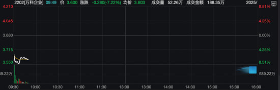股票方面,万科A(000002)、万科企业(02202.HK)盘初均一度跌超8%,截至发稿,跌幅收窄至超7%。